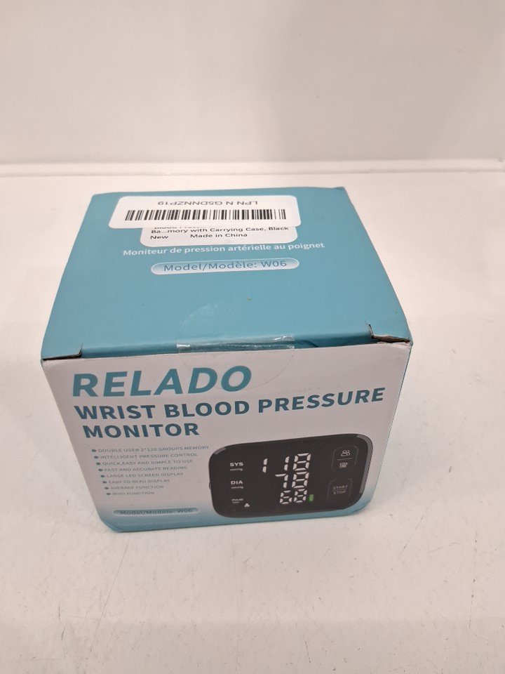 relado Blood Pressure wrist Monitor with LED Backlit Display - 2.55" x 3.15" - black/grey (model: w06)
