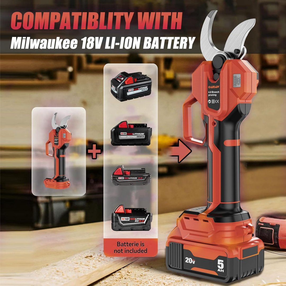 NAOKEV 2-IN-1 Electric Pole Pruning Shears Cordless Compatibility with Milwaukee 18V Battery - 1.6" Cutting Diameter Pruner, 14.8 FT MAX Extension Pole Saws - NO BATTREY INCLUDED - RED (MODEL‎: HQ-052)