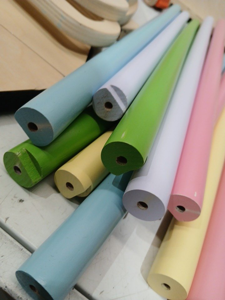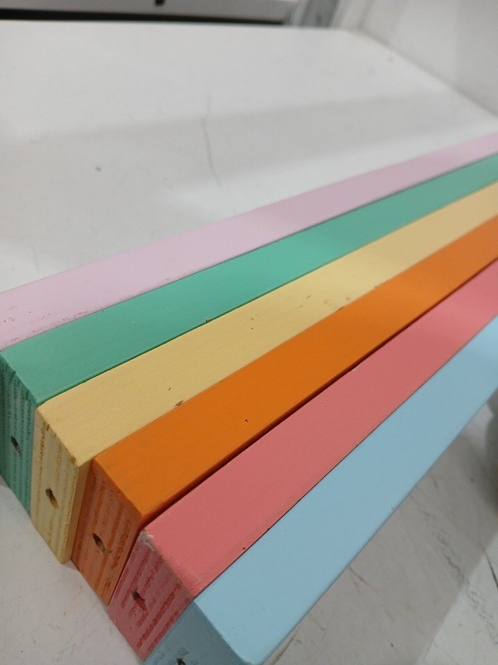 there is some chipping of paint in some spots there is one piece missing its felt/Velcro pad