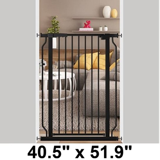 WAOWAO TALL PRESSURE MOUNT WALK THROUGH, SWING AUTO CLOSE SAFETY BABY GATE - 40.5" TALL - EXTENDS 49.2"-51.9" - BLACK METAL - (MODEL: W282)