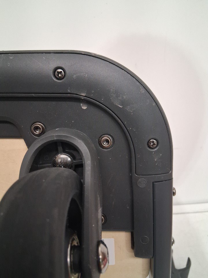 Scuff marks on the top and bottom of the board and the wheels also show signs of previous use.