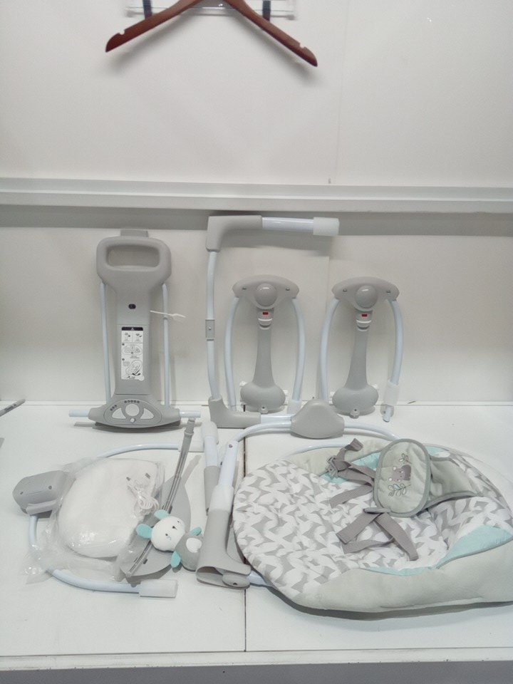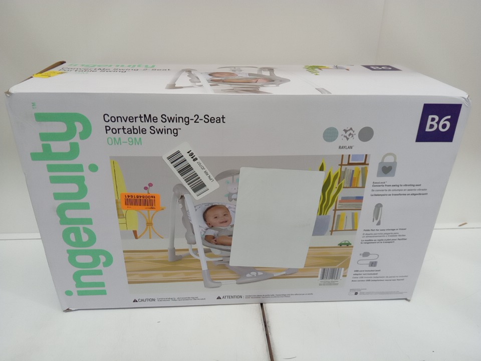 INGENUITY convertme 2-in-1 compact portable plug in automatic baby swing and infant seat - 0 to 9 months - 6lbs to 20lbs - grey (model: 12189-es)