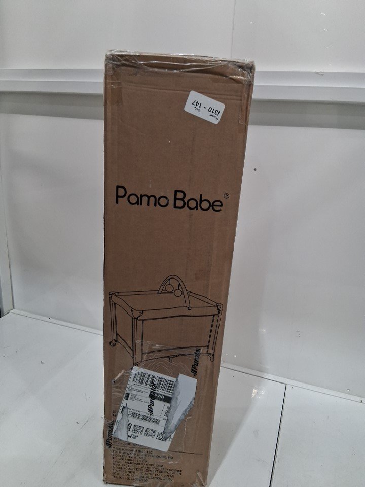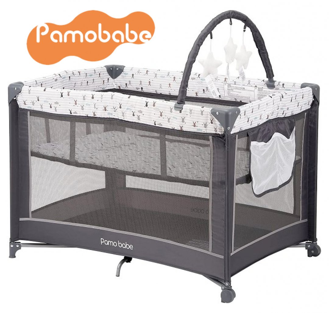 PAMOBABE LIGHTWEIGHT PORTABLE CRIB with mattress and carrying bag - 33lbs capacity - 27.5" x 27.5" x 39.5" - grey/rabbit