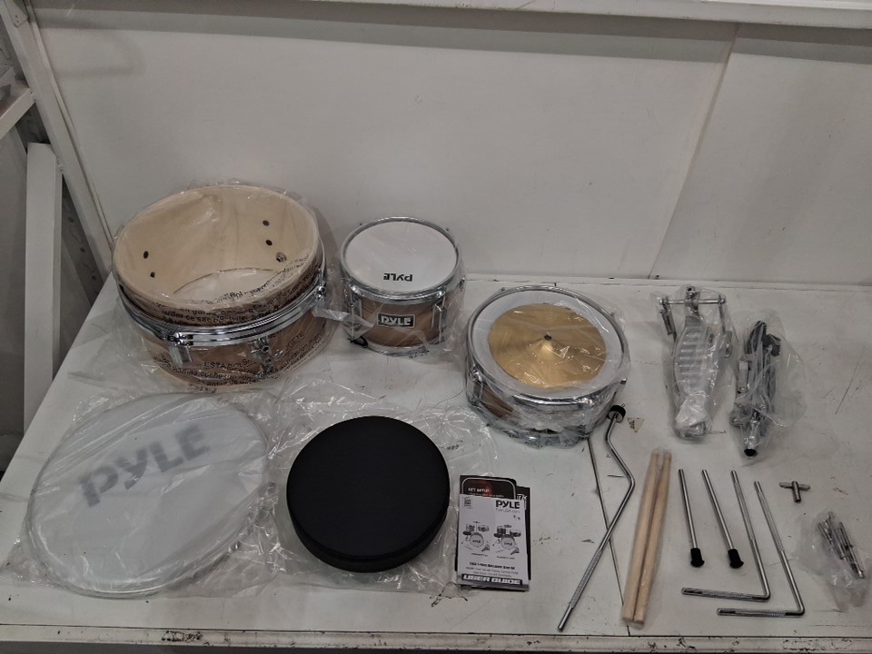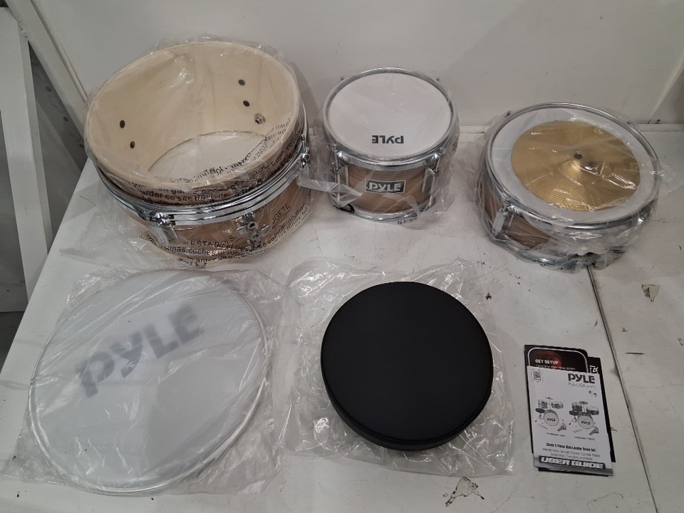 3PC PYLE USA Beginner Junior Drummer Kit for kids - 19" x 15.5" x 15" - natural wood/silver - (model: PDRMKIT72N)