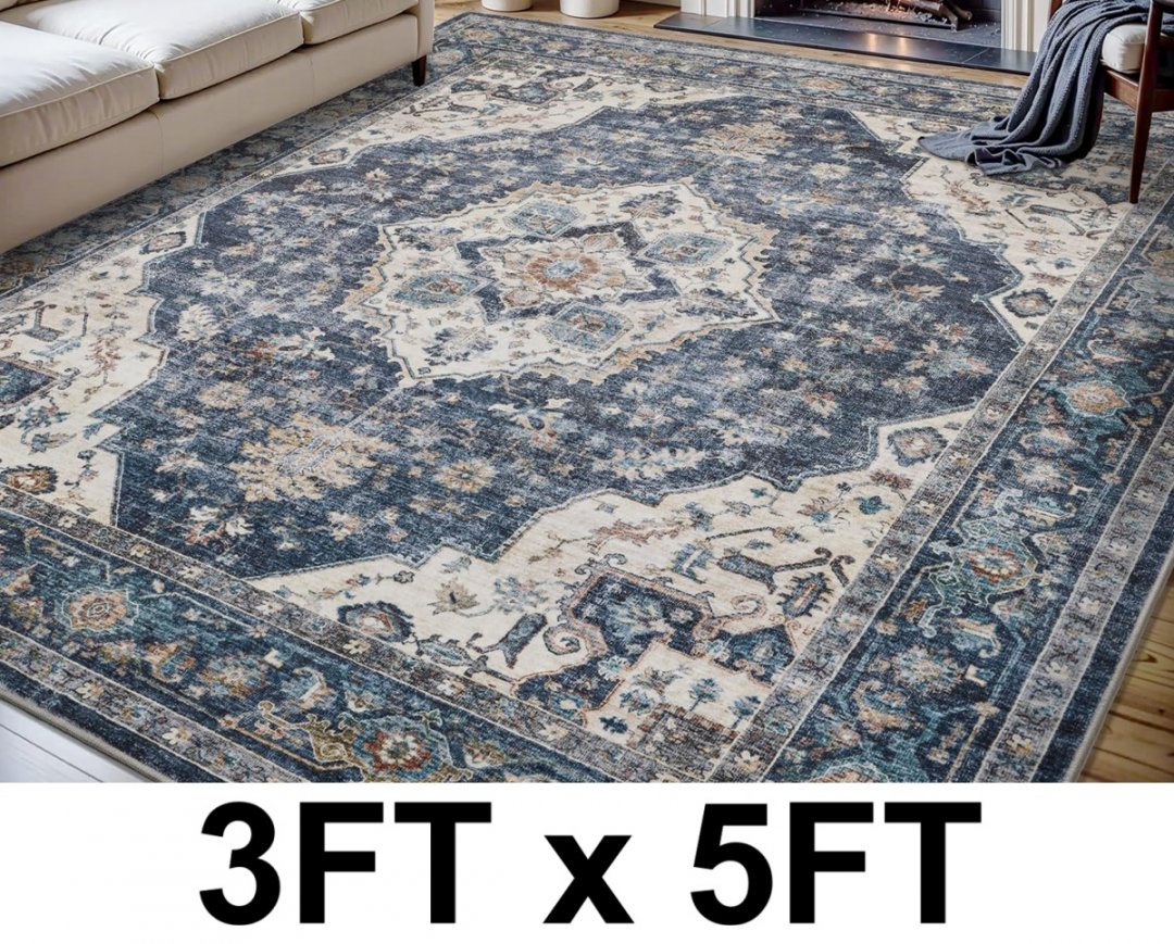Montvoo washable non-slip soft area rug for living room - 8ft x 10ft - BLUE