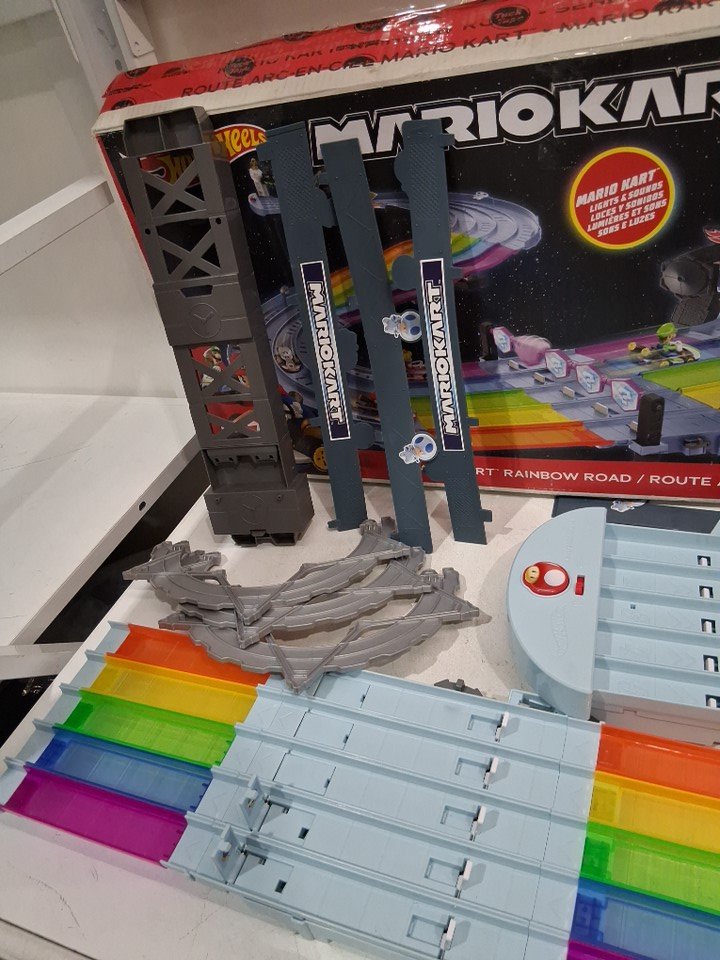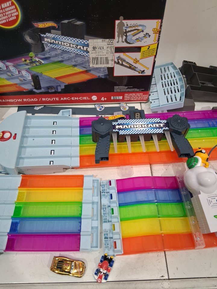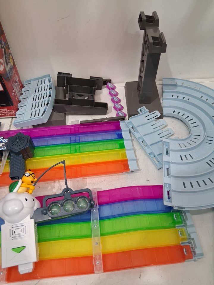 please note the item is missing the king boo kart and has a different car instead. tested for lights and sound. there is some light markings indicating previous use. see photos.