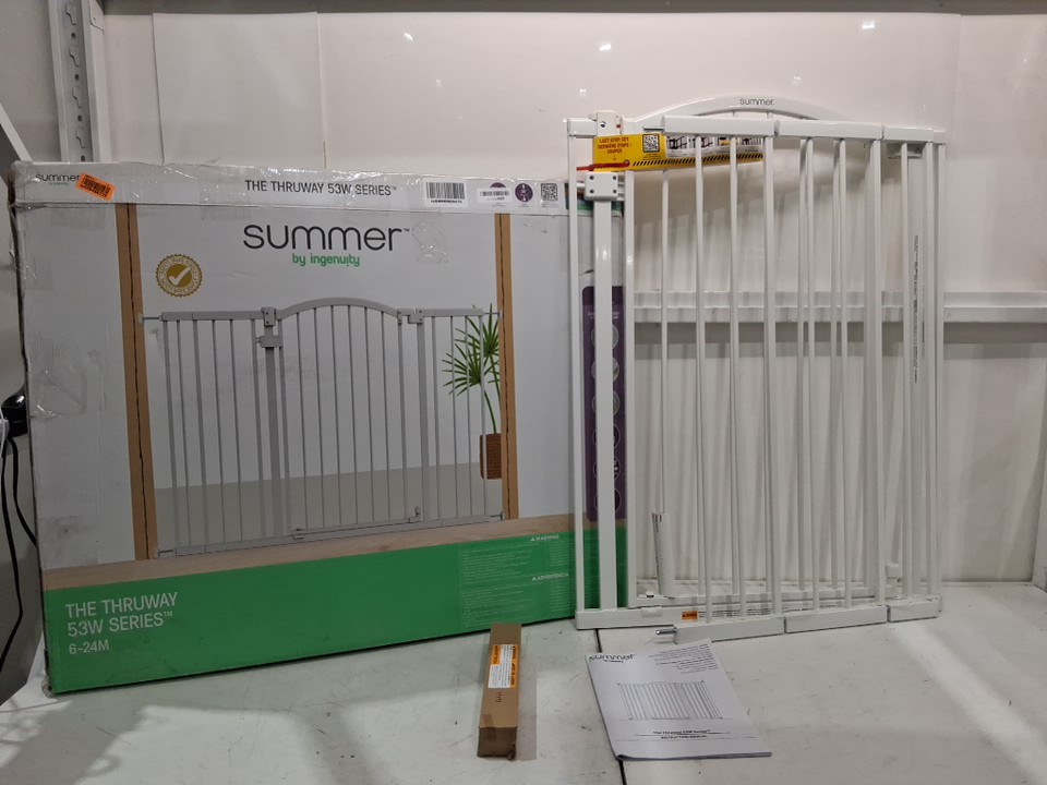 summer infant by ingenuity the thruway 53w series extra tall & wide safety baby/pet gate - 29.5"-53” x 38" - white (model: 17173)