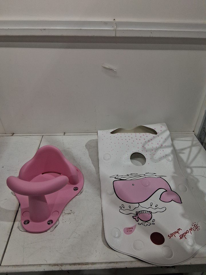 BBCARE NON-SLIP SAFETY BATH SEAT WITH EXTRA LONG BATH MAT & 'hot spot' feature - 15" x 7" - pink whale