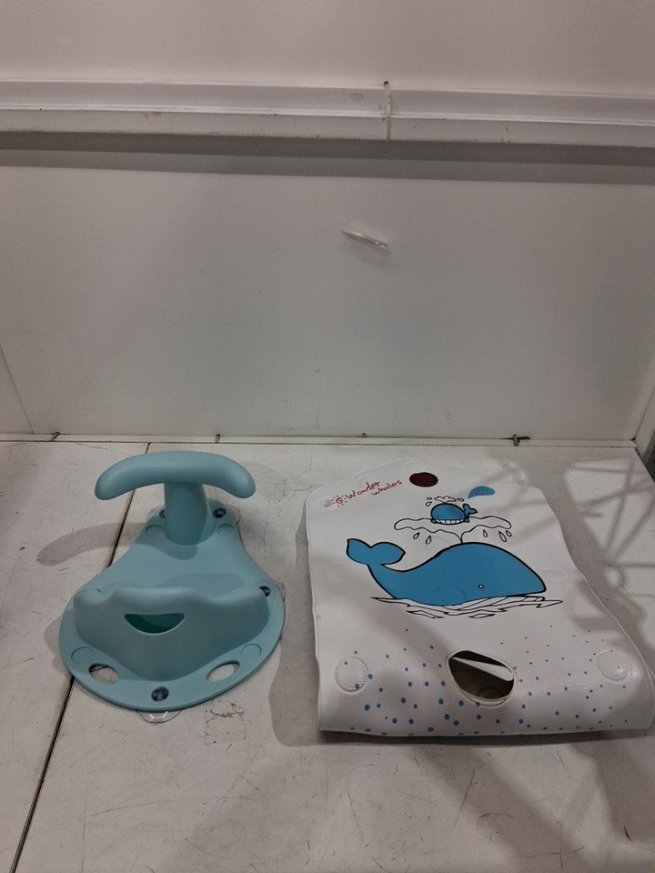 BBCARE NON-SLIP SAFETY BATH SEAT WITH EXTRA LONG BATH MAT & hot spot feature - 15" x 7" - blue whale