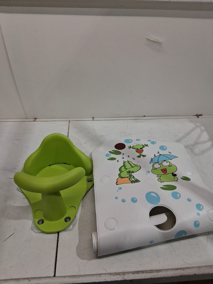 BBCARE NON-SLIP SAFETY BATH SEAT WITH EXTRA LONG BATH MAT & 'hot spot' feature - 15" x 7" - green frog