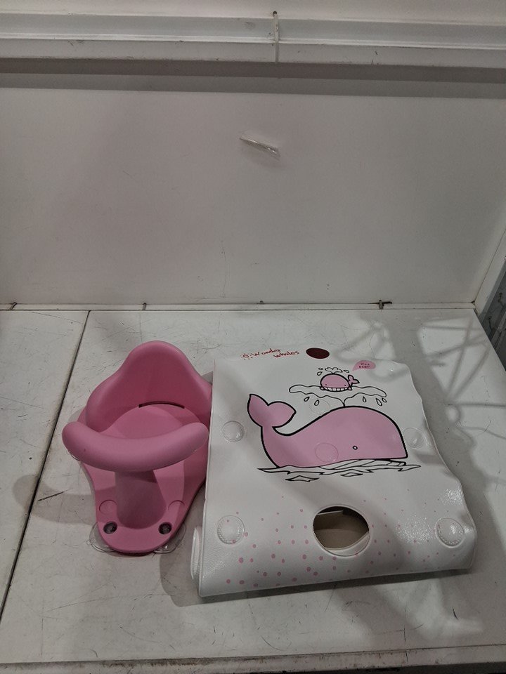 BBCARE NON-SLIP SAFETY BATH SEAT WITH EXTRA LONG BATH MAT & 'hot spot' feature - 15" x 7" - pink whale