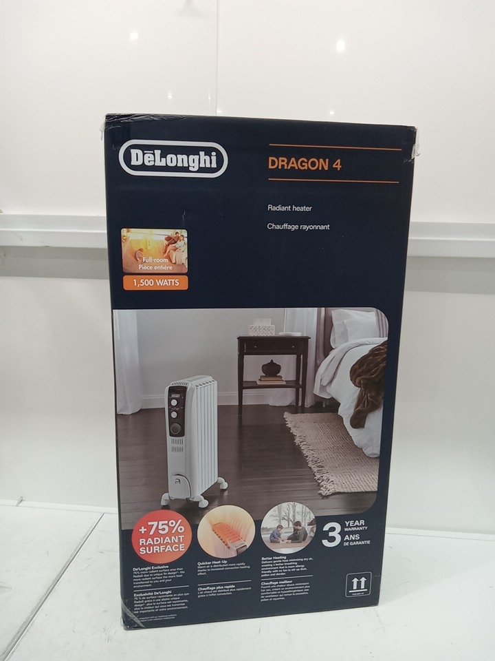 delonghi dragon full-room radiant space heater - 144sq.ft coverage - 1500w - white (model: trd40615tca)