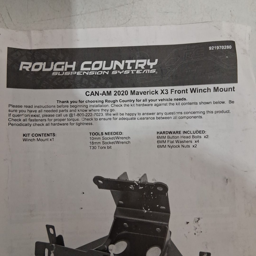 ROUGH COUNTRY WINCH MOUNTING PLATE FOR various 2017-2025 CAN-AM MAVERICK X3 - 1/4" STEEL - BLACK (MODEL: 921970280)