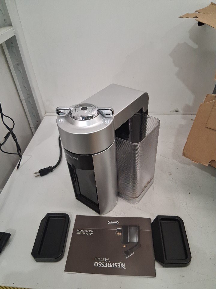 item has coffee residue and water marks from previous use also the pods and the cup holder is missing but this can be replaced and there are 3rd party replacements available through amazon. tested for basic power