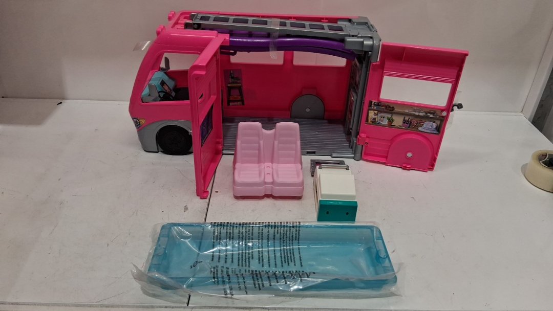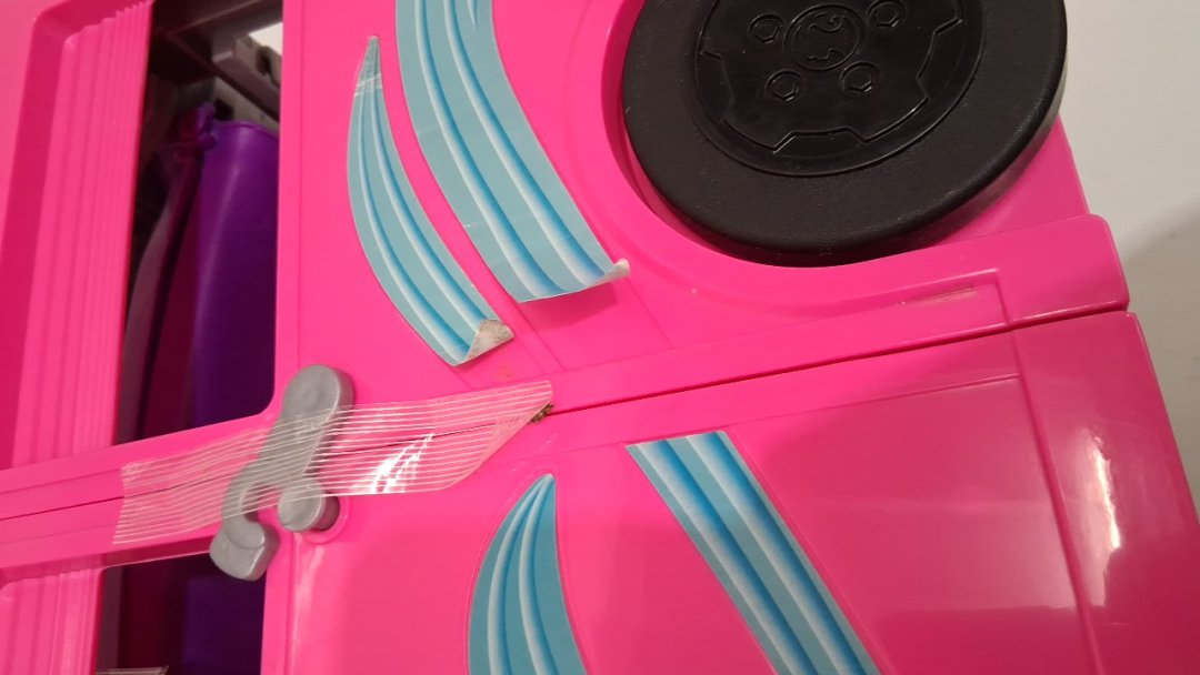 there are scuffs on the item itself, some of the stickers are peeling, and some of the accessories are missing, (table, chairs)