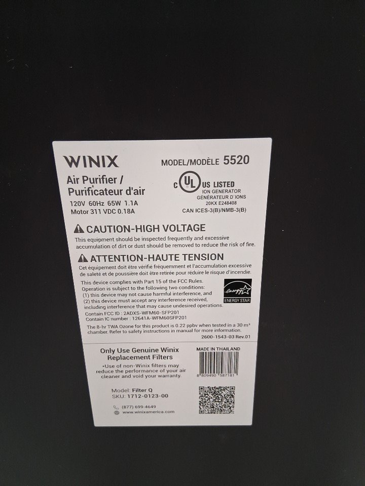 WINIX large room true hepa air purifier with wi-fi control - 1882sq.ft coverage - black (model: 5520)