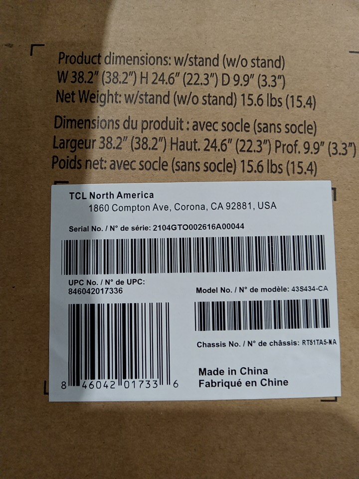 TCL 43" Class 4-Series 4K UHD HDR Smart Android TV - (Model: 43S434-CA)