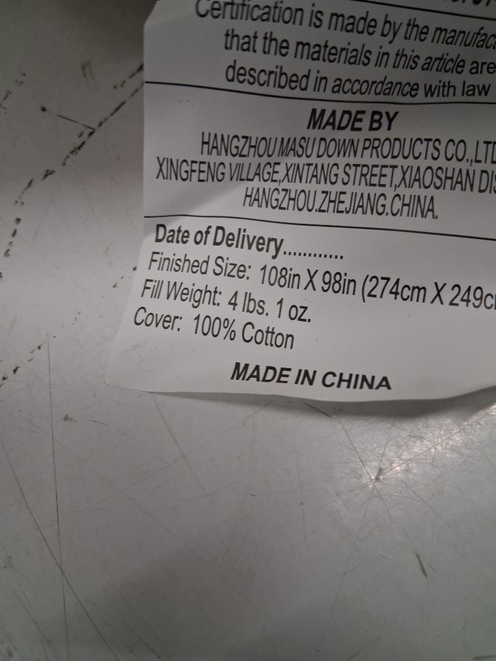 COMFORTER DUVET MACHINE WASHABLE, california KING SIZED 108" X 98", WHITE
