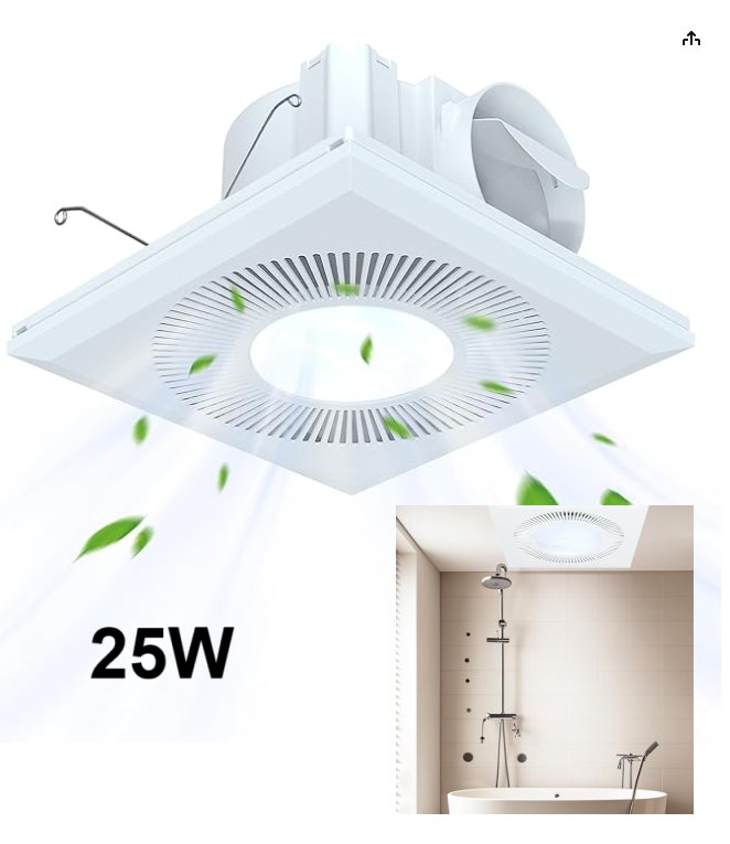 bathroom exhaust ventilation fan - brushless motor - 25W- white -