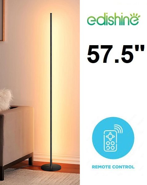 EDISHINE modern remote control dimmable led corner floor lamp - 57.5" - black (model: hflcb1b)