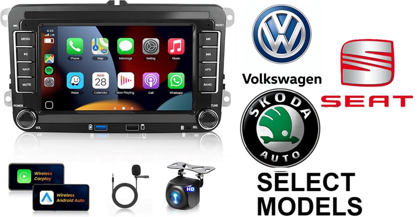 2+64G CAR STEREO WITH DOUBLE DIN TOUCHSCREEN, BLUETOOTH, AND MORE FOR SELECT VOLKSWAGEN, SKODA, SEAT MODELS - 7" (MODEL: A3676)