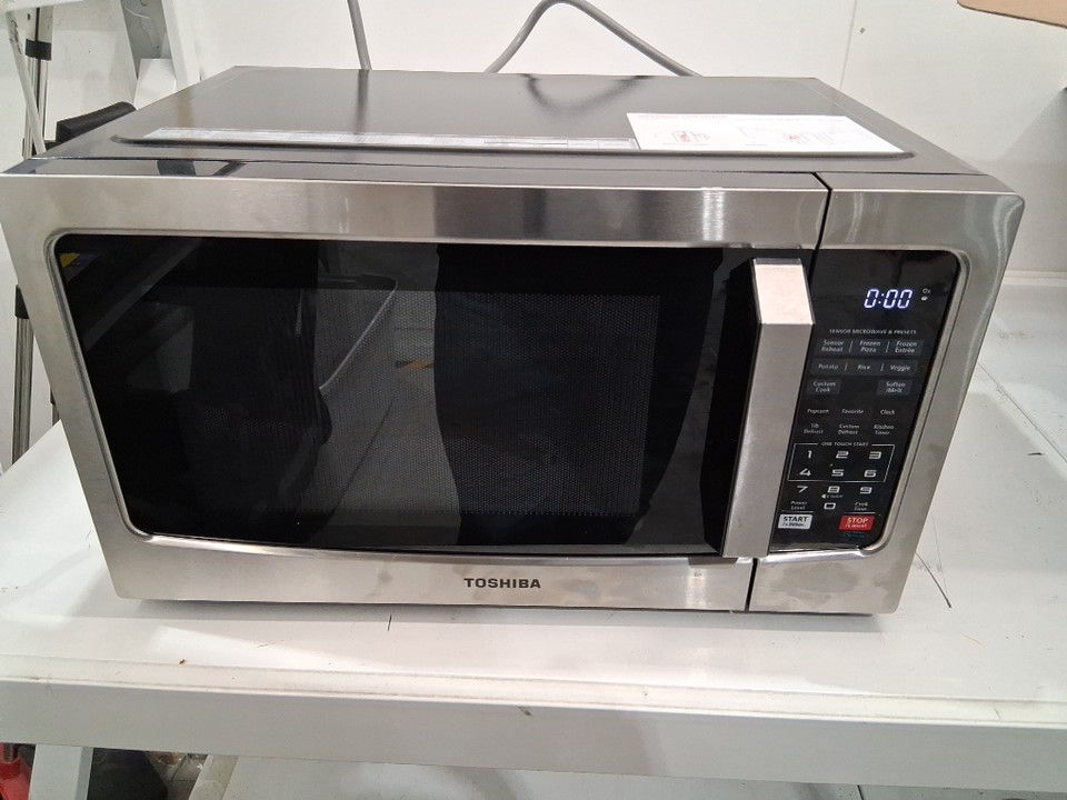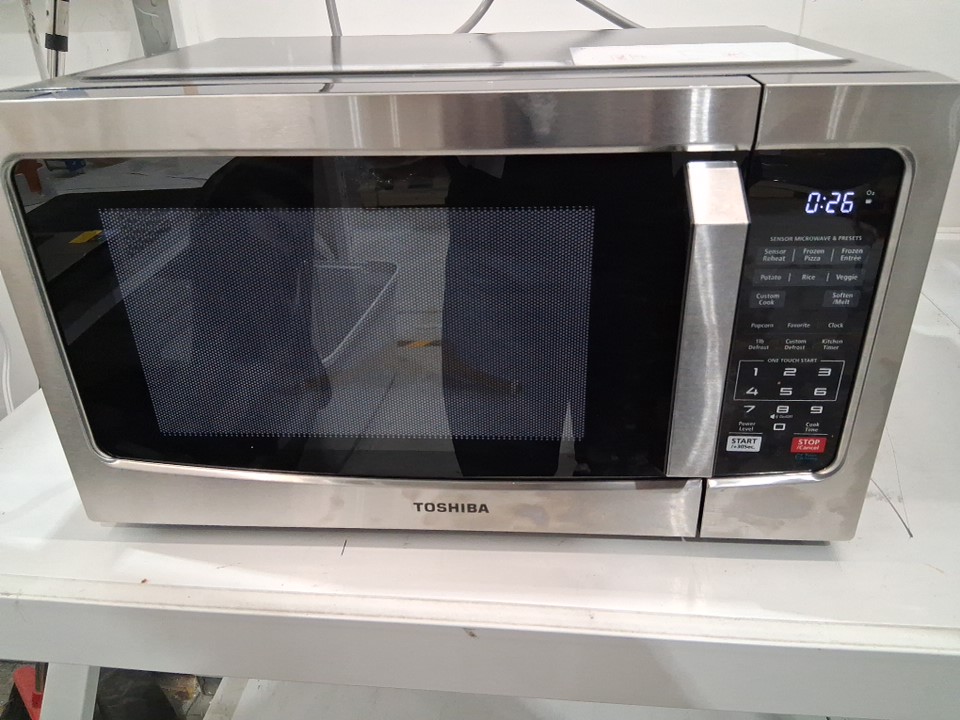 There is some light food residue on the inside of the microwave and some smudges on the face indicating some previous use, but appears to be in good condition and function without any issues - see photos.