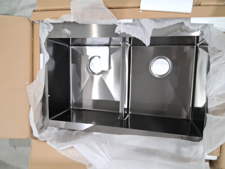 LQS Kitchen Sink Low-Divide Drop In Kitchen Sink Handmade Deep Top Mount 50/50 Double Bowl Stainless Steel Kitchen Sink with Accessories 16 Gauge - Black - 33" x 22"