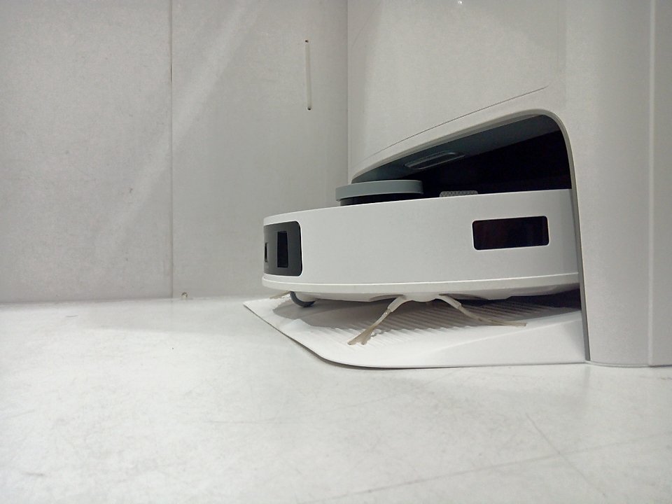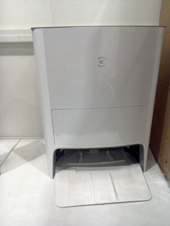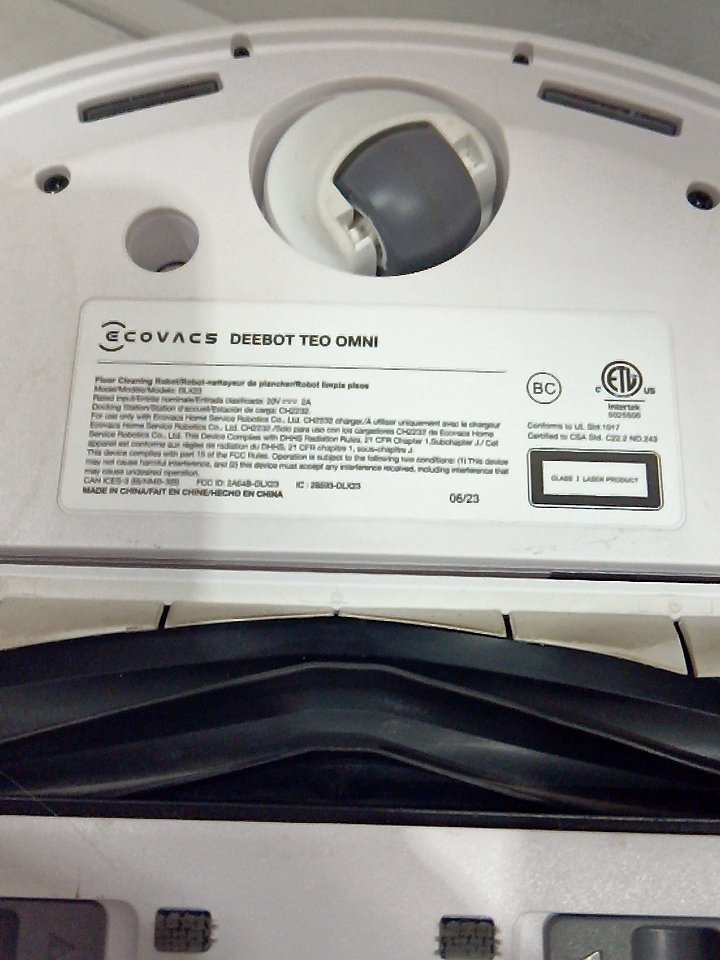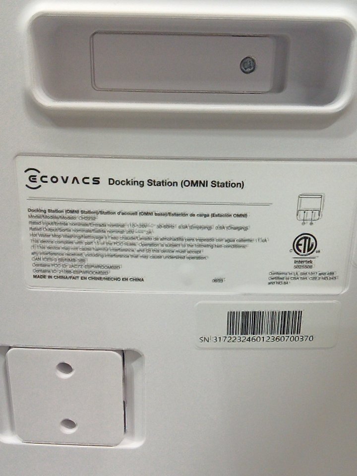 The base of the charging station was slightly bent upwards, so when returning to base, the vacuum got stuck until it was pushed down slightly. There is some dust and light markings on the bottom of the vacuum and on the mop pads/charging station base. Tested for power and vacuum movement/returning to base with the Ecovacs mobile app. (SEE PHOTOS)
