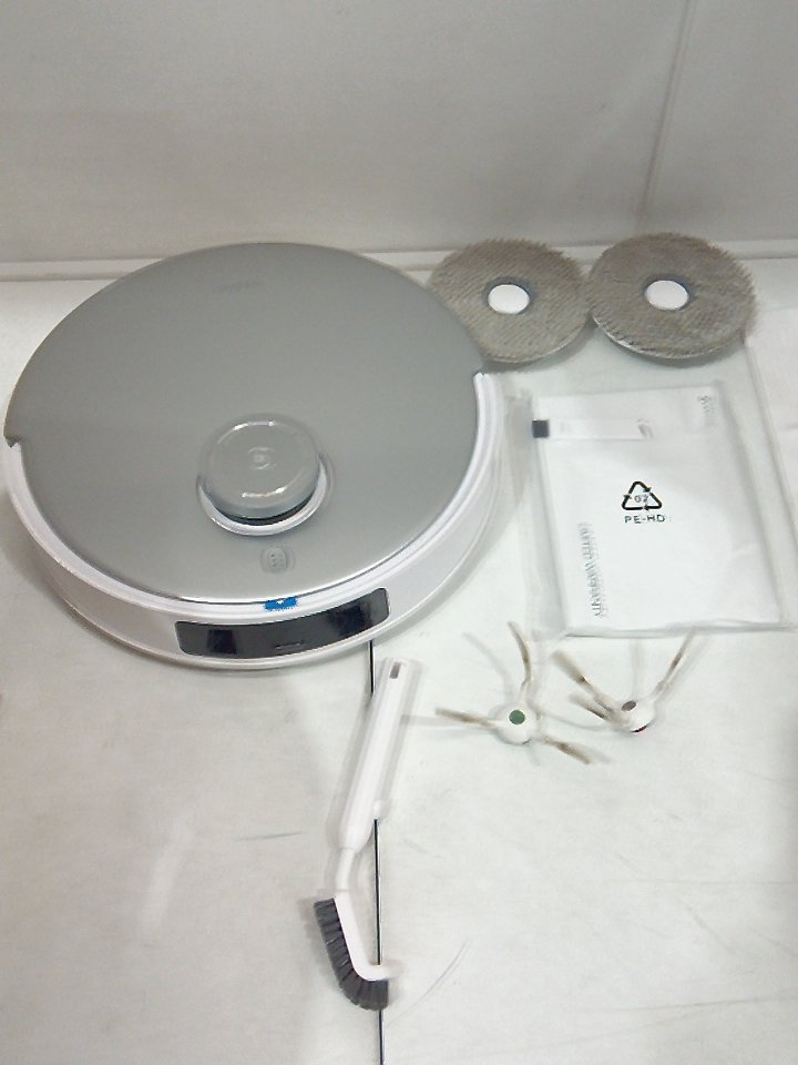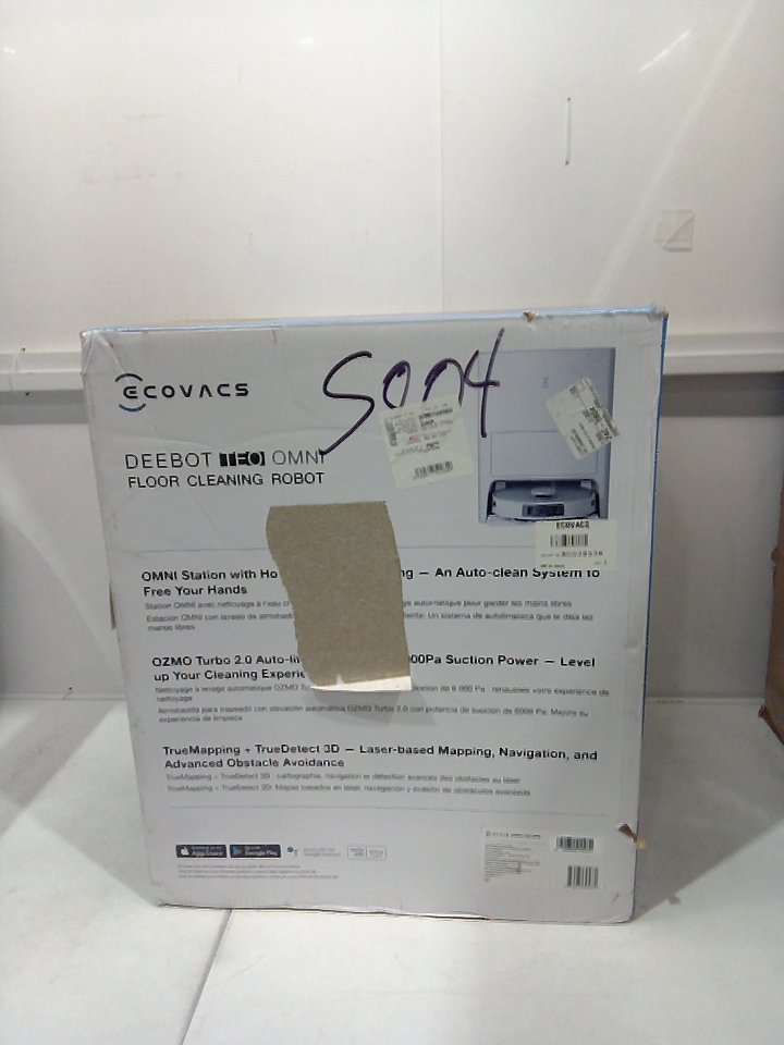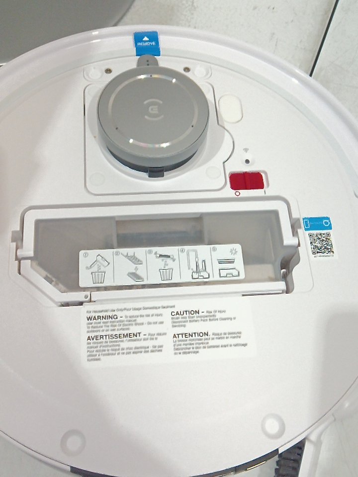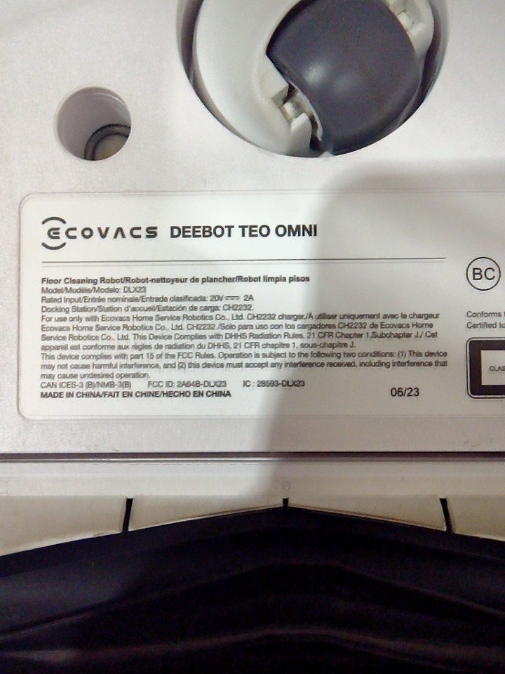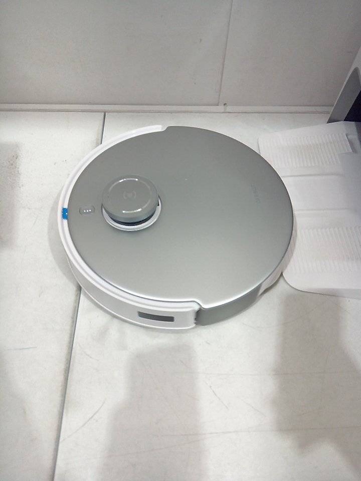 The base of the charging station was slightly bent upwards, so when returning to base, the vacuum got stuck until it was pushed down slightly. There is some dust and light markings on the bottom of the vacuum and on the mop pads/charging station base. Tested for power and vacuum movement/returning to base with the Ecovacs mobile app. (SEE PHOTOS)