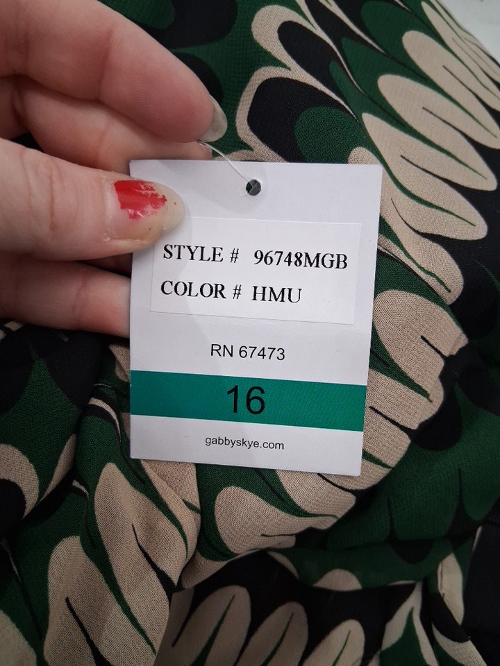 WOMENS Gabby Skye Belted Long Sleeve Printed Chiffon Pleated Midi Dress - 16 - GREEN/BEIGE