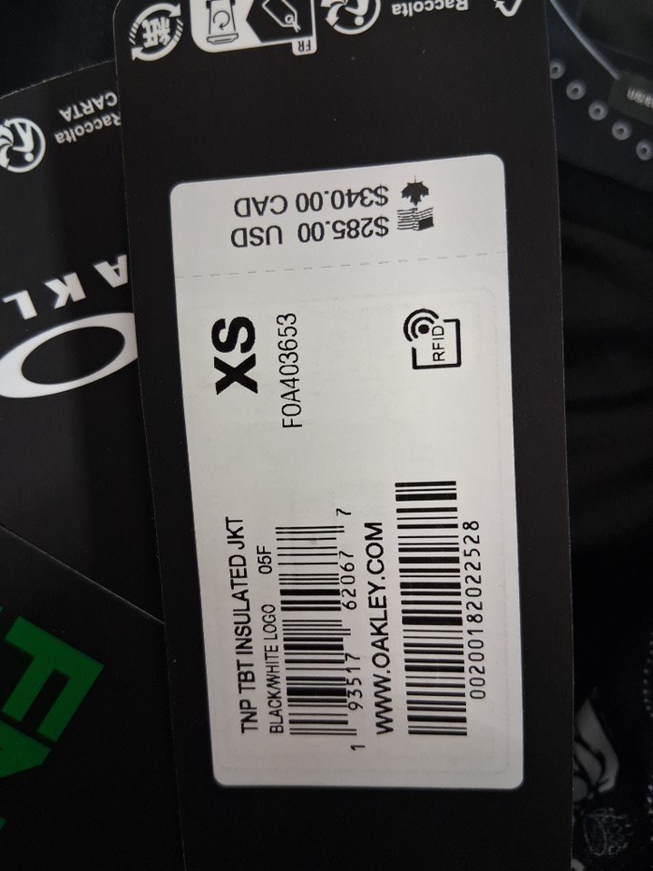Oakley Unisex TNP TBT Tc Aurora Rc Insulated Jacket - XS - Black/White Logo (Model: FOA500278)