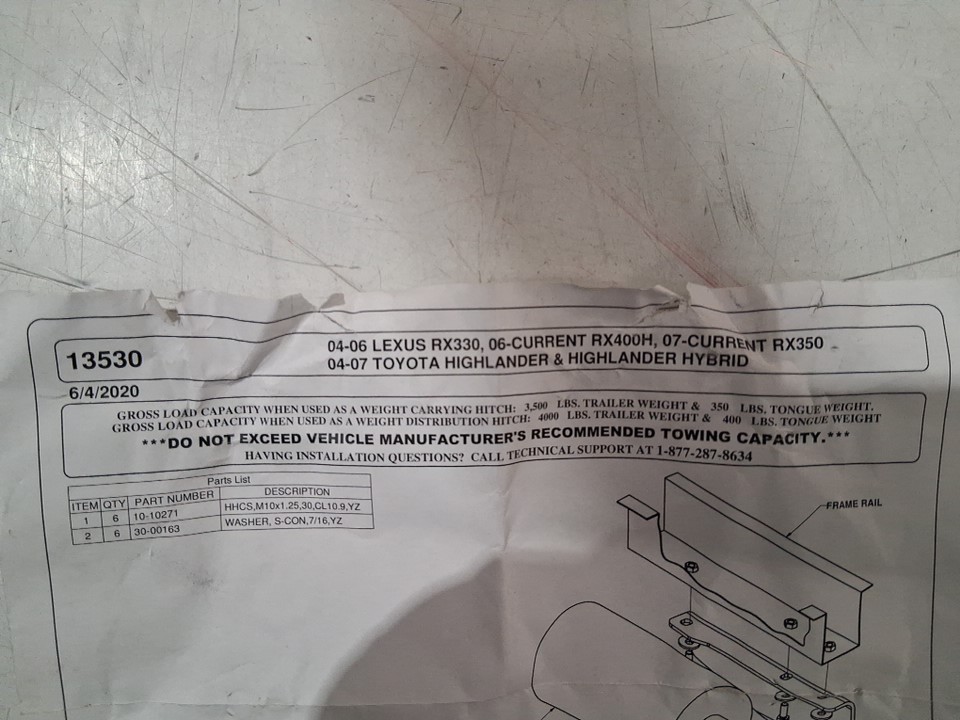 CURT Class 3 Hitch - 3500LB gross trailer MAX weight - 350 lb tongue MAX weight - 2" Receiver - FOR SELECT LEXUS AND TOYOTA HIGHLANDER MODELS - BLACK (mODEL: 13530)