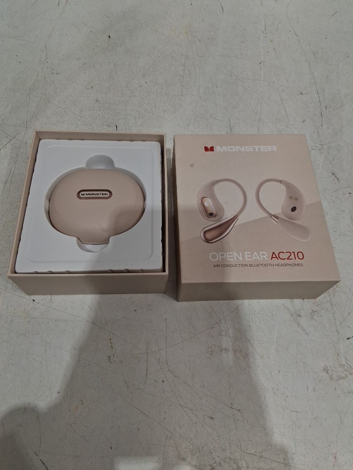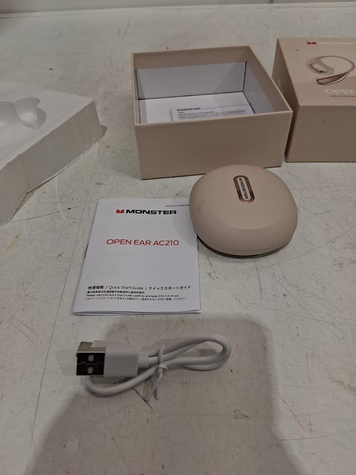 MONSTER OPEN EAR HEADPHONES BLUETOOTH STEREO SOUND, WIRELESS TYPE C CHARGING WATERPROOF - white (MODEL: AC210)