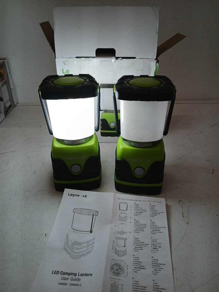 2pk LEPRO Outdoor LED Camping Lantern - 1000LUMENS - 7" - green/black