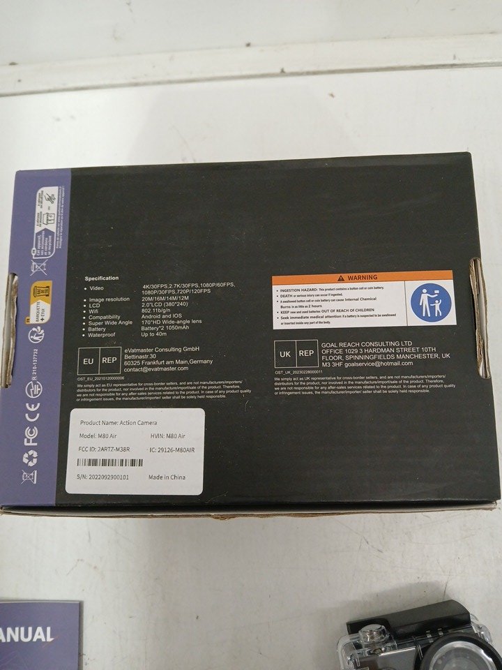Apexcam 4K WIFI Action Camera - 20MP ultra hd Waterproof Camera (up to 131FT), 170°Wide-Angle, 2.4G Wireless Remote Control, 2.0'' LCD Screen, 2 x 1050mAh Rechargeable Battery and Accessories Kit (MODEL: M80AIR)