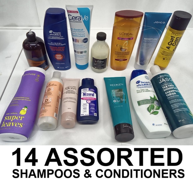 14 assorted shampoos & conditioners - assorted brands, sizes & conditions