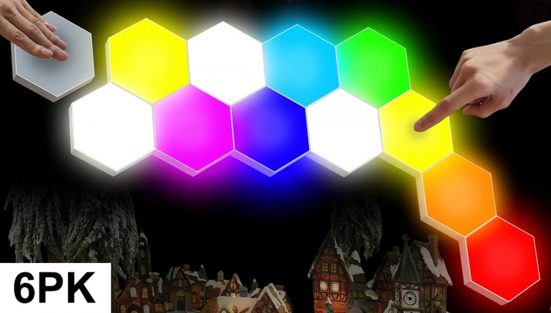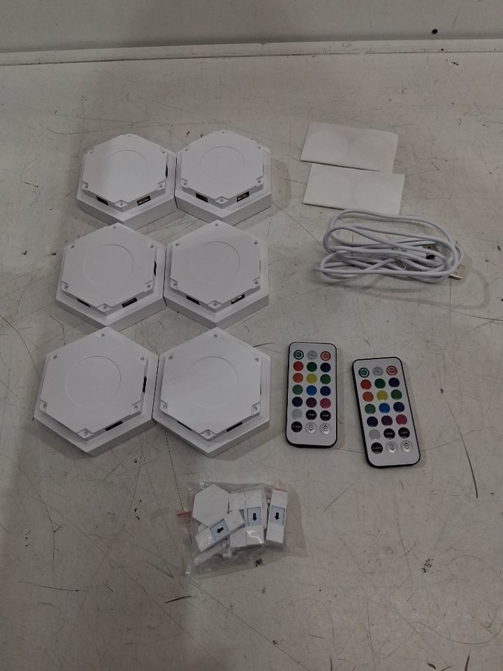 6PK YXQUA Modular Hexagonal Wall Mount Touch Sensitive LED Lights With Remotes - 3.5" x 4" - Multicolor