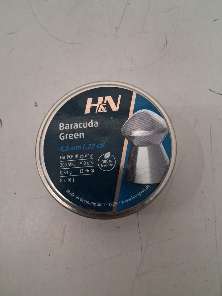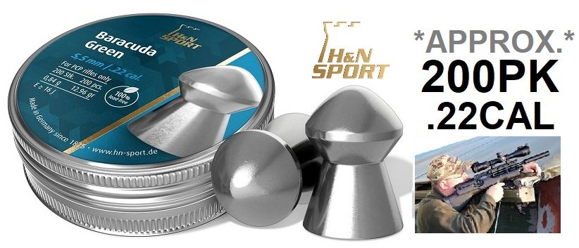 **approximately** 200PK h&n baracuda green airgun pellets for pcp rifles - 0.22 caliber - silver