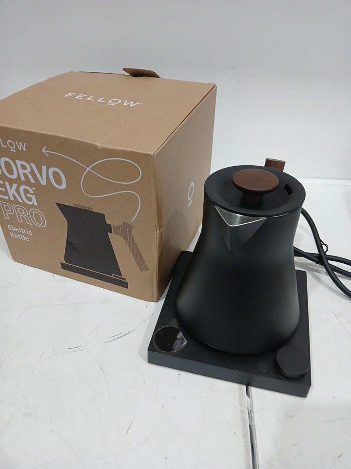 fellow cordless electric kettle with adjustable digital controls - 0.9l - white with maple wooden handle (model: ep2caaus)