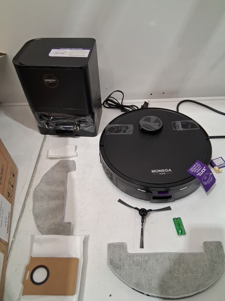 MONSGA 2-in-1 self-emptying robot vacuum cleaner/mop system with app controls - black (model: ms1 max)