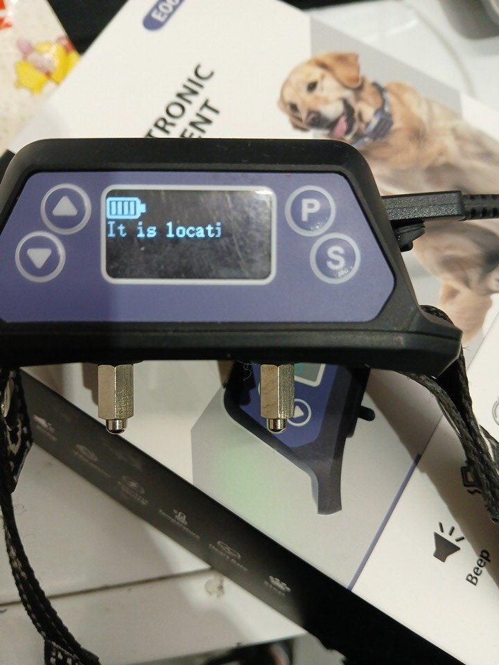 Missing cover and some shock posts. Has a dog smell and the surface is scuffed/dirty from use.