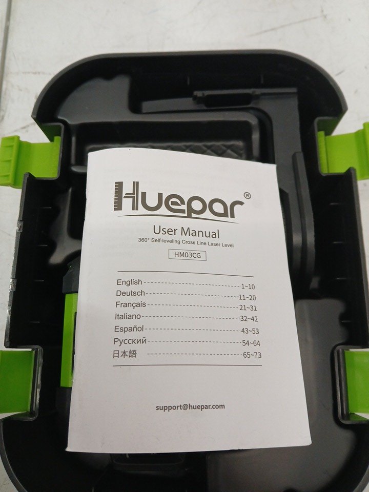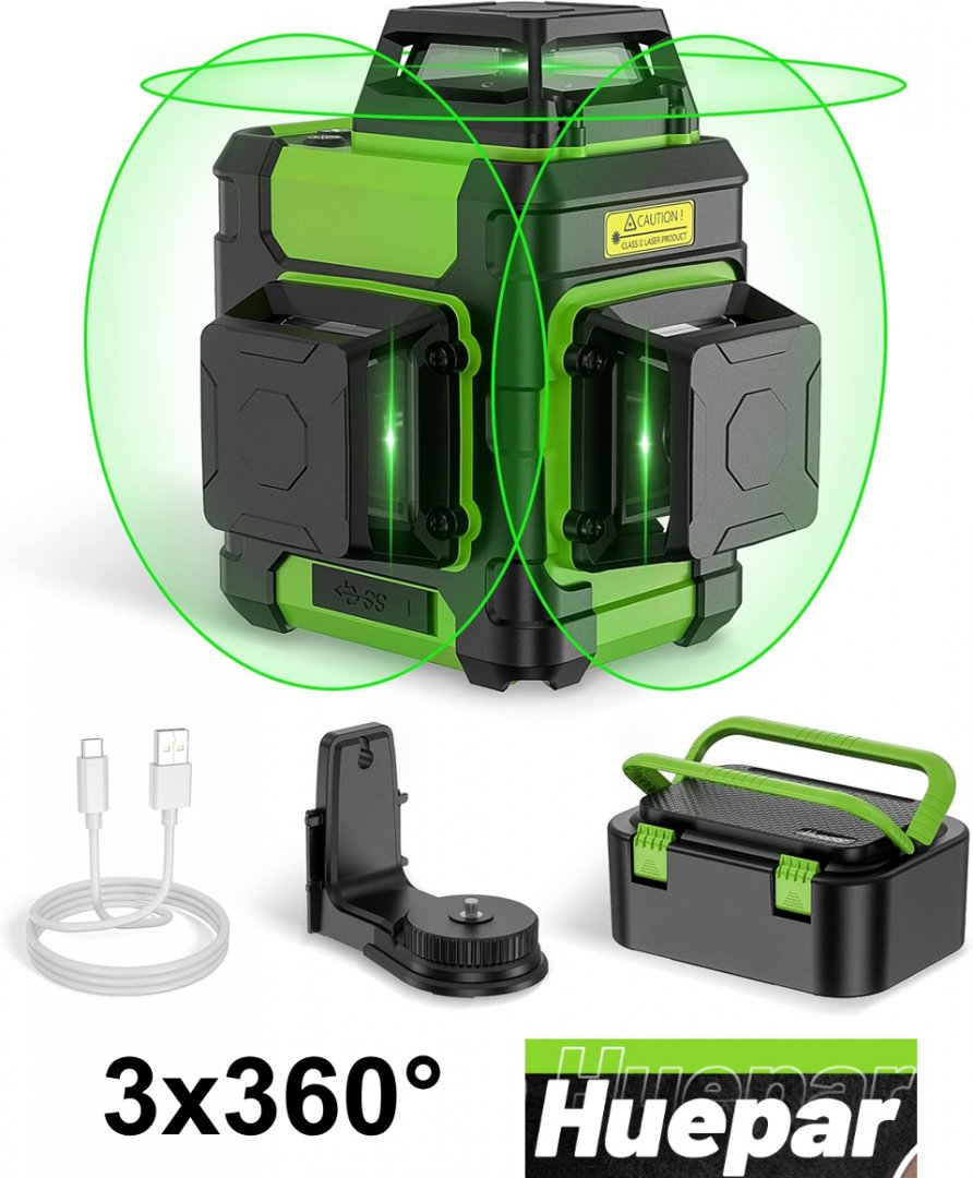 Huepar 360° Self Leveling, Rechargeable Laser - 3x360° Cross Line -for Construction - BLACK GREEN (MODEL:HM03CG)