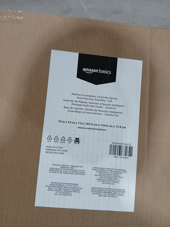 AMAZON BASICS SMART BOX SPRING BED BASE, MATTRESS FOUNDATION - 74" X 53" X 5" / FULL - OFF-WHITE (MODEL: b07k6h2p7g)
