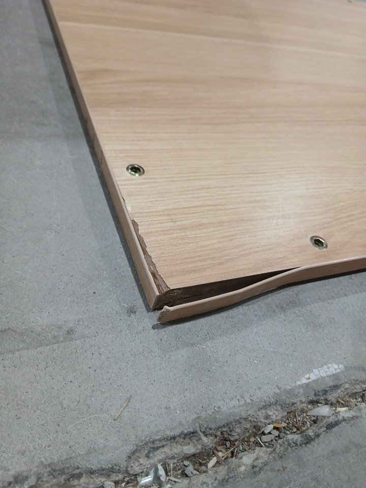 Please note the top of the desk has multiple dents and dings, see photos attached. The legs also have minor scuffs. No hardware is included, and will need to be replaced.