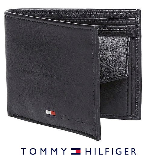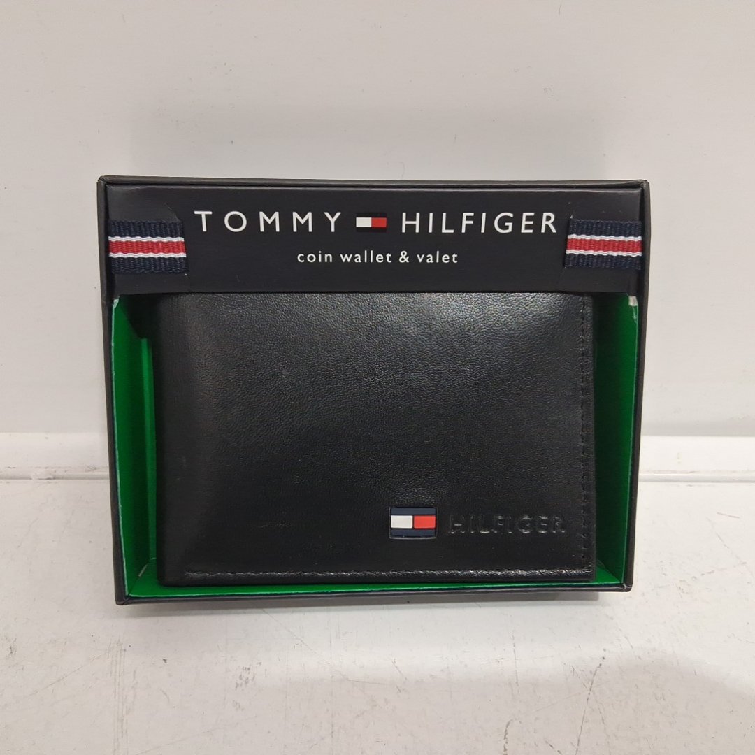 MEN'S TOMMY HILFIGER PREMIUM COIN POUCH WALLET & VALET - BLACK LEATHER (MODEL: 31TL25X020)