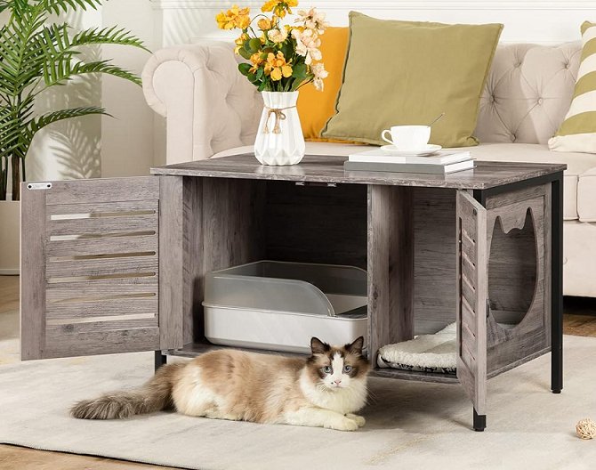 hoobro hidden cat litter box enclosure - 31.4" x 19.8" x 17.7" - greige (model: bg06mw01)