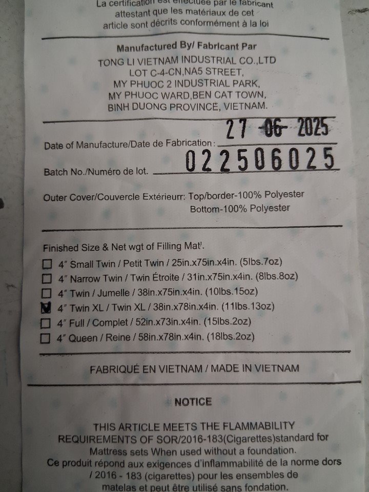4" TRIFOLD FOLDING MATTRESS with Removable washable Covers - TWIN XL (78" x 38") - WHITE/GREY