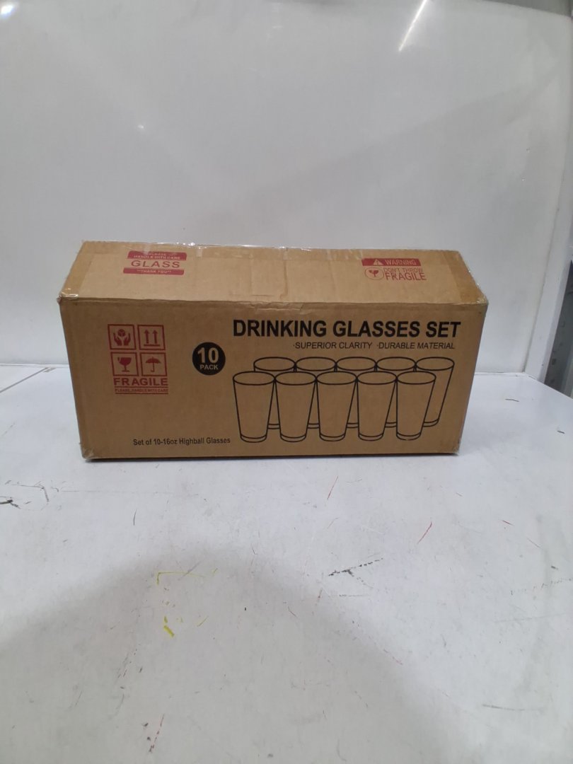 10PK LE'RAZE DRINKING GLASS CUPS - Water , juice , beer - 16oz - clear - (model:gl-272)