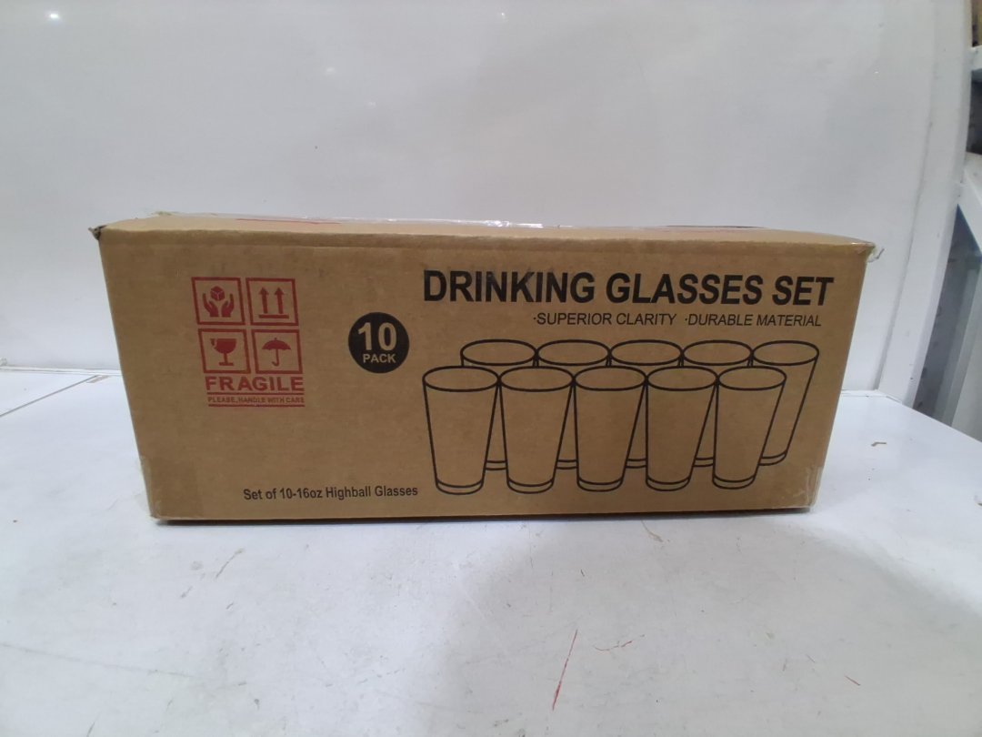 10PK LE'RAZE DRINKING GLASS CUPS - Water , juice , beer - 16oz - clear - (model:gl-272)