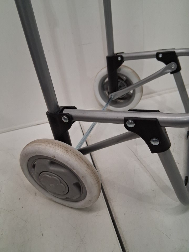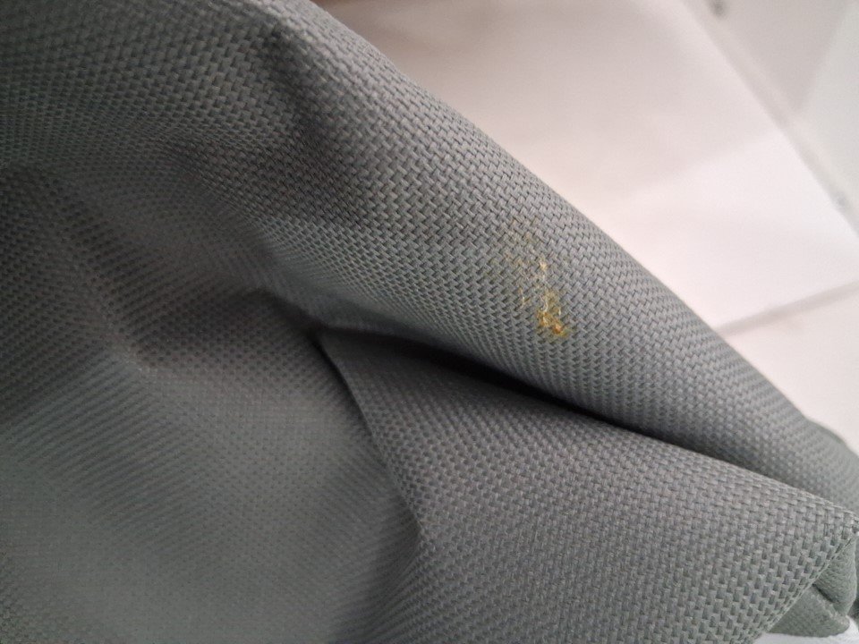 item has some dust/marks on wheels from previous use also has a small stain in bag shown in pictures